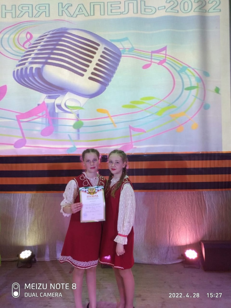 Чепик Светлана и Булатова Ева ученицы 7 класса заняли 1 место среди вокальных ансамблей (возрастная группа 11-14 лет).