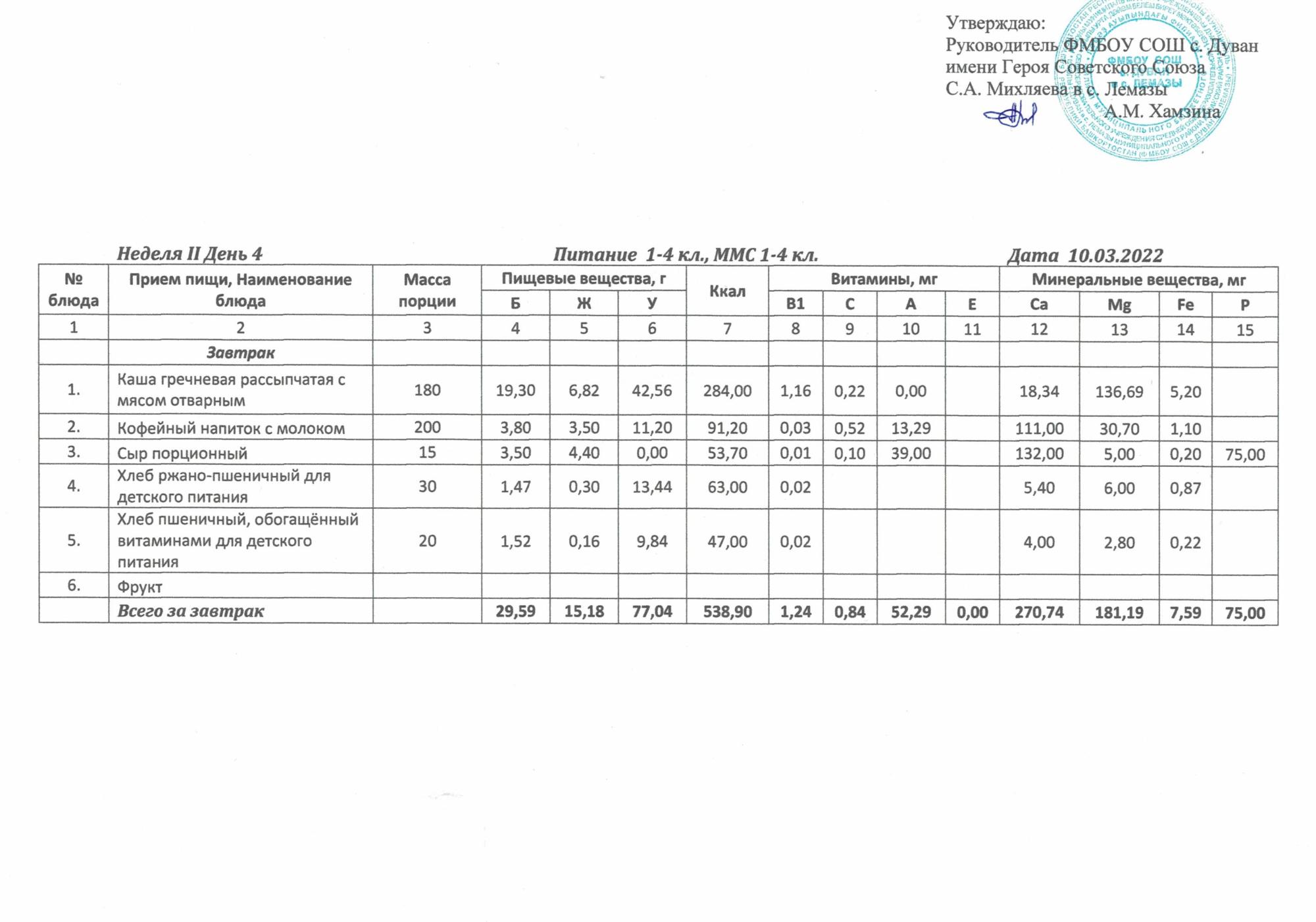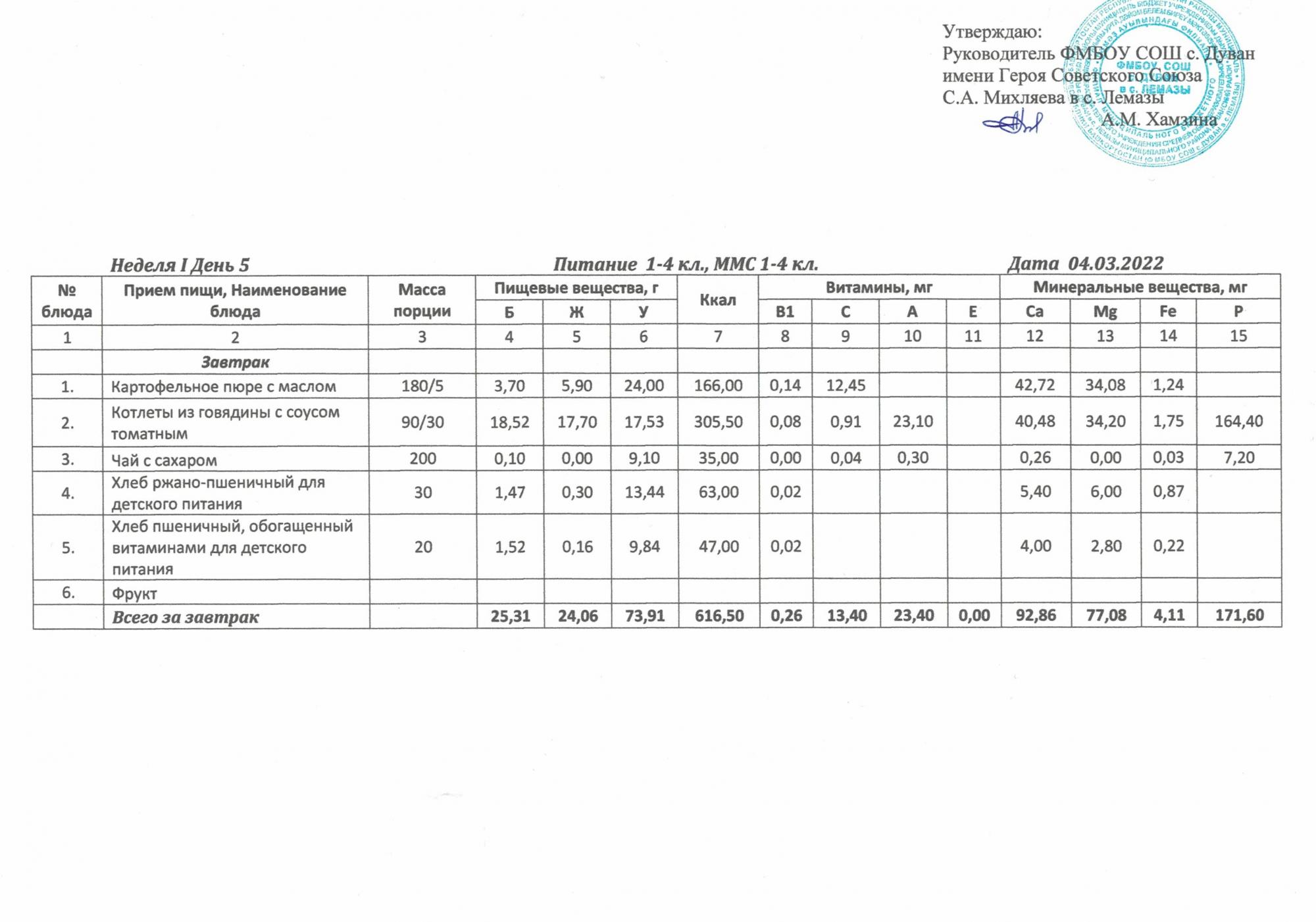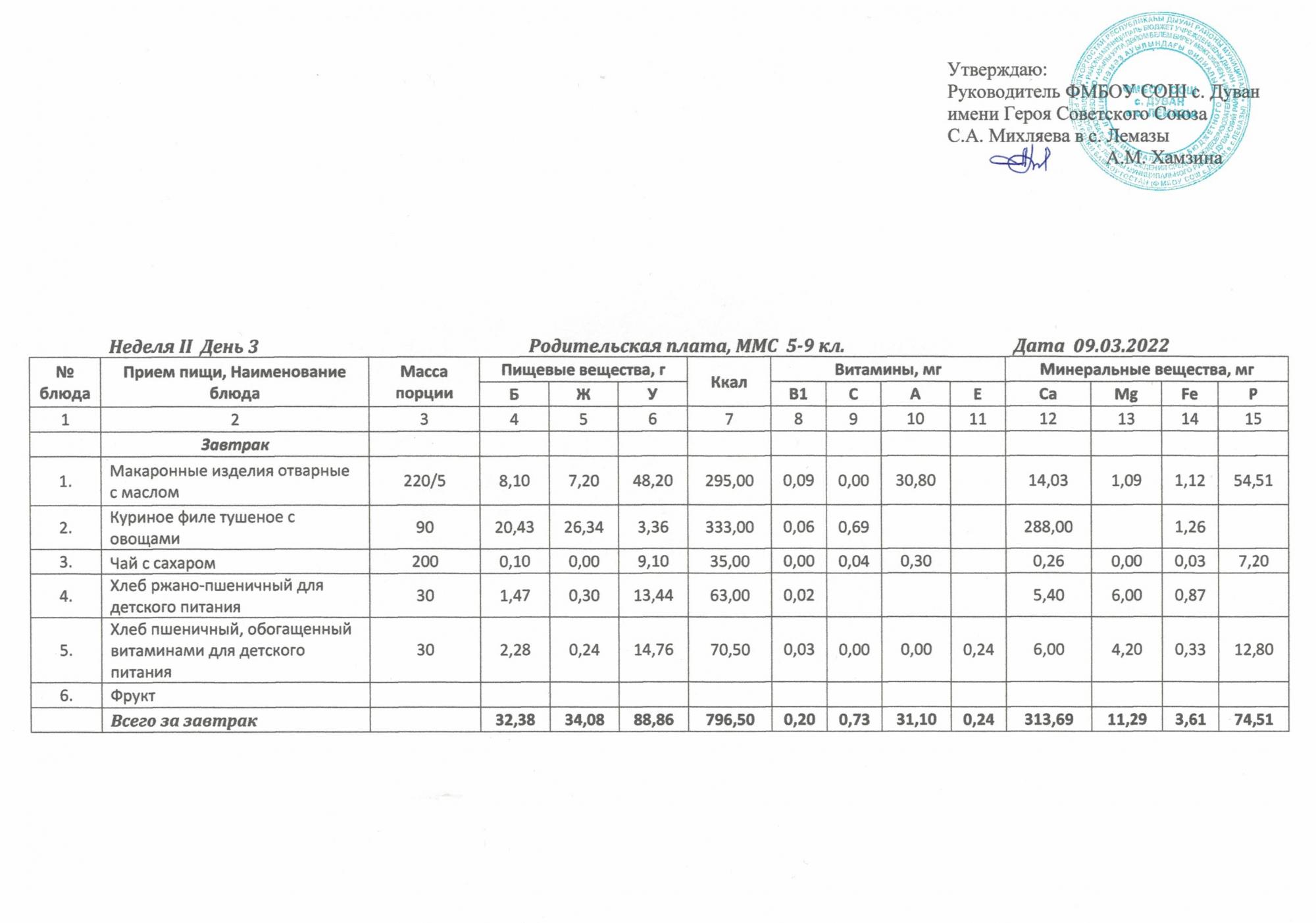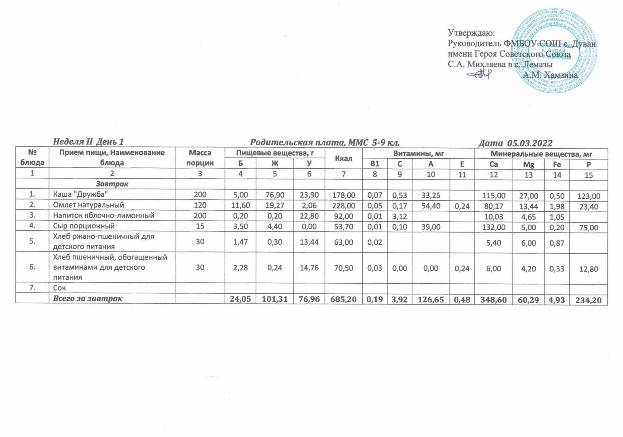 Утверждённое ежедневное меню и фото