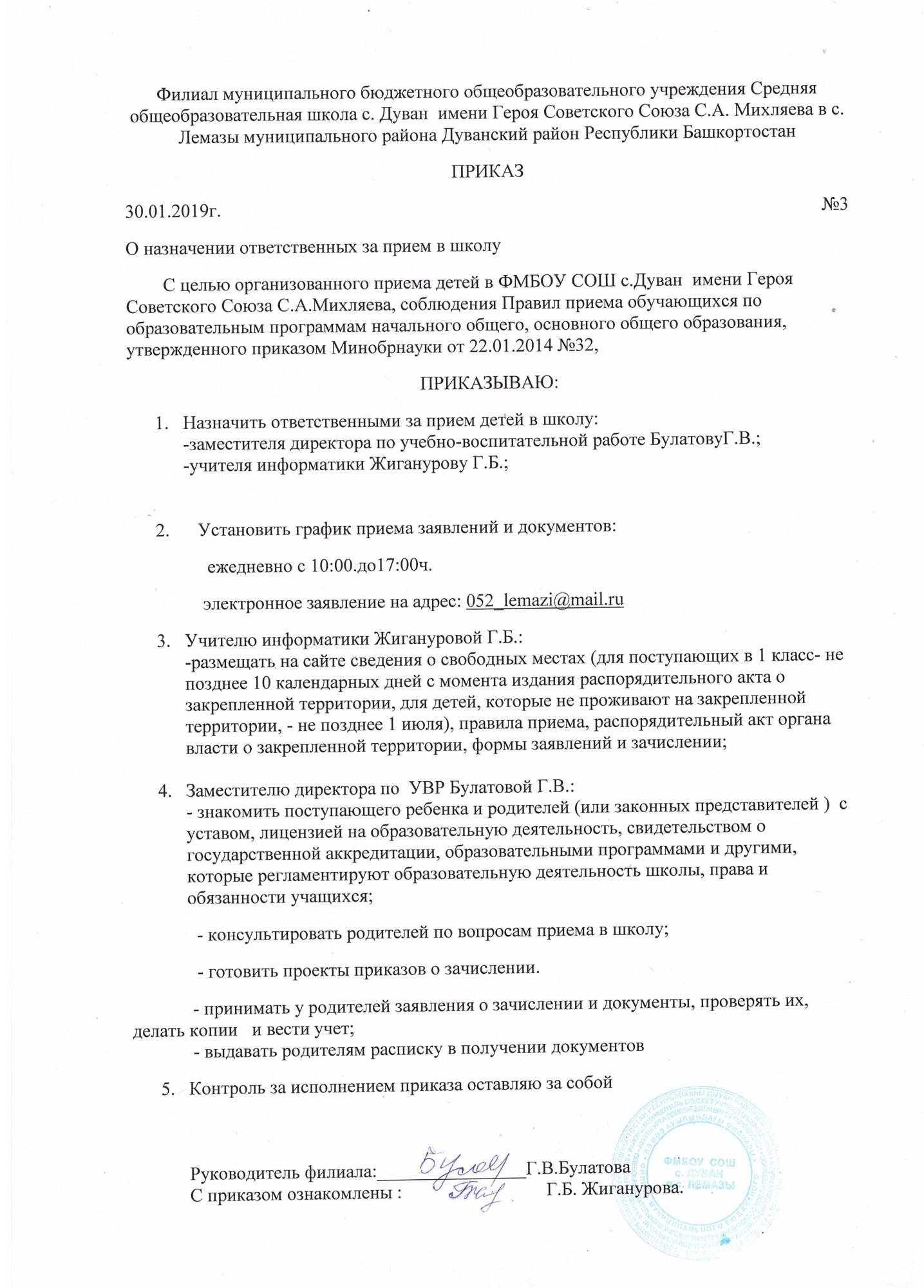 Прием обучающихся в школу производится в соответствии со следующими нормативными документами: